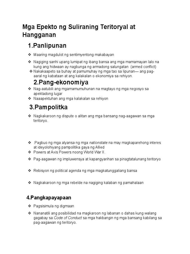 Mga Epekto Ng Suliraning Teritoryal At Hangganan Pdf