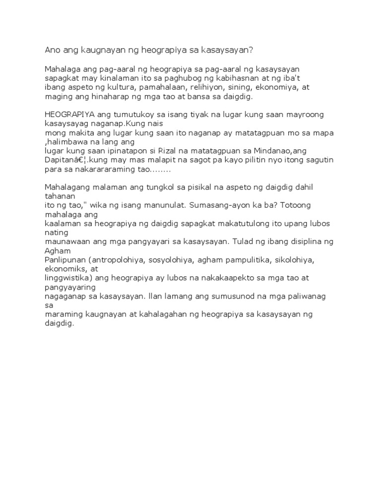 Ano Ang Kaugnayan Ng Heograpiya Sa Kasaysayan Pdf