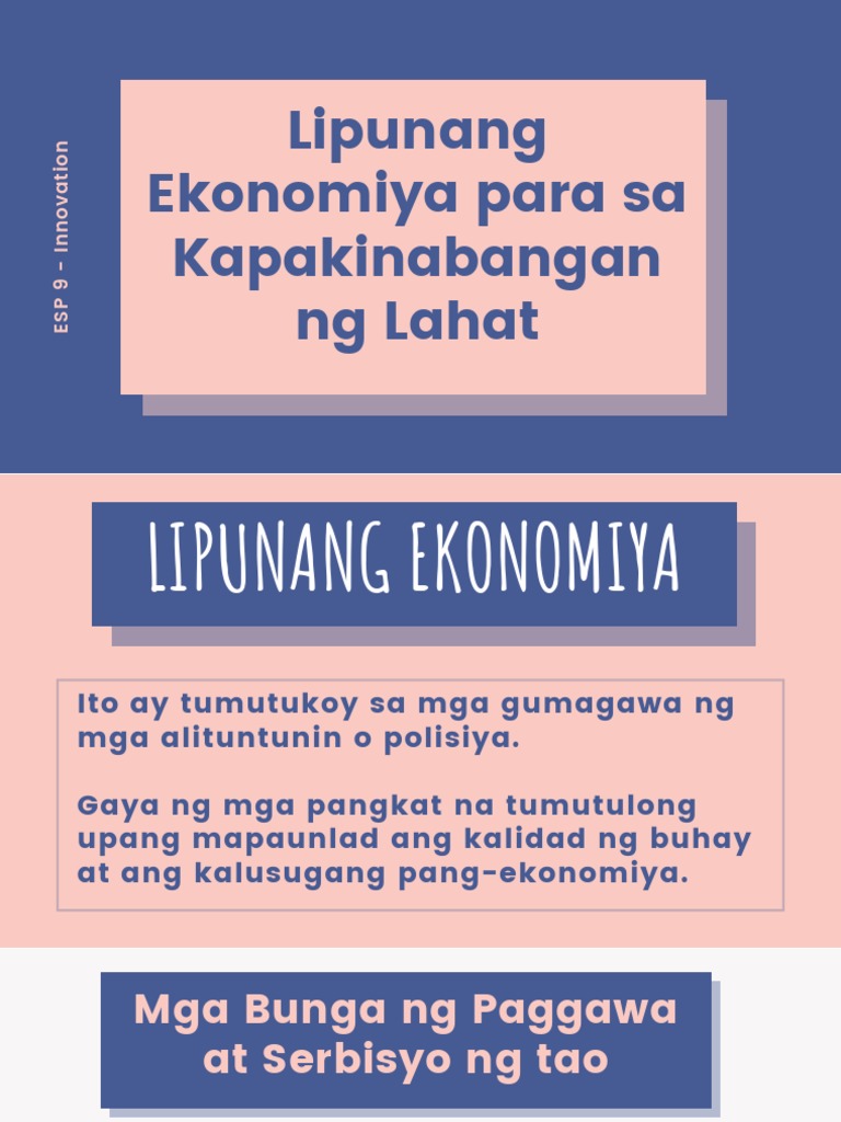 Ito ang kaparaanan na ginagamit ng lipunan upang gumawa at mamahagi ng mga produkto at serbisyo. Nila ang mga ito. R makikita ang displina ng bawat kabataan na maaaring maging malaking tulong a paglago ng ekonomiya ng bansa.