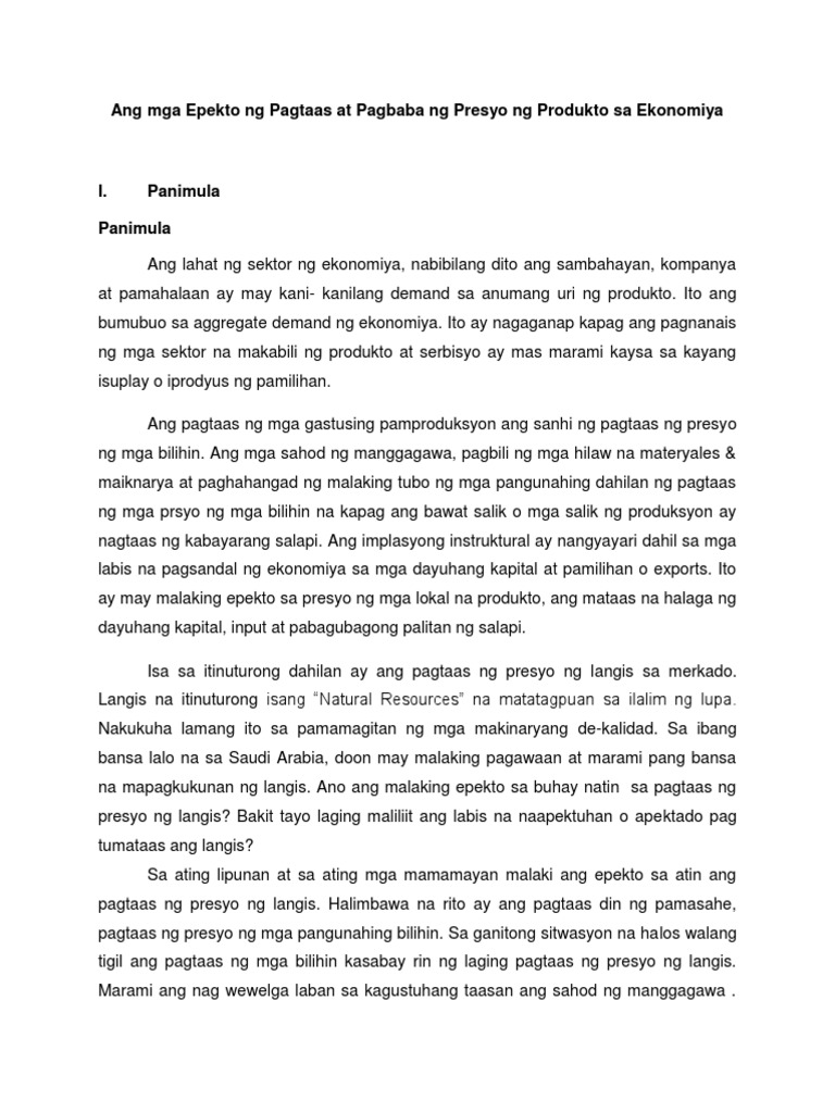 Ang Mga Epekto Ng Pagtaas At Pagbaba Ng Presyo Ng Produkto Sa Ekonomiya Pdf
